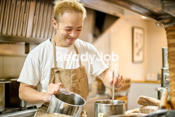 まずはお店の雰囲気になれてもらい徐々に仕込みや調理補助~麺の調理にステップアップしていきます。